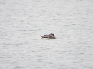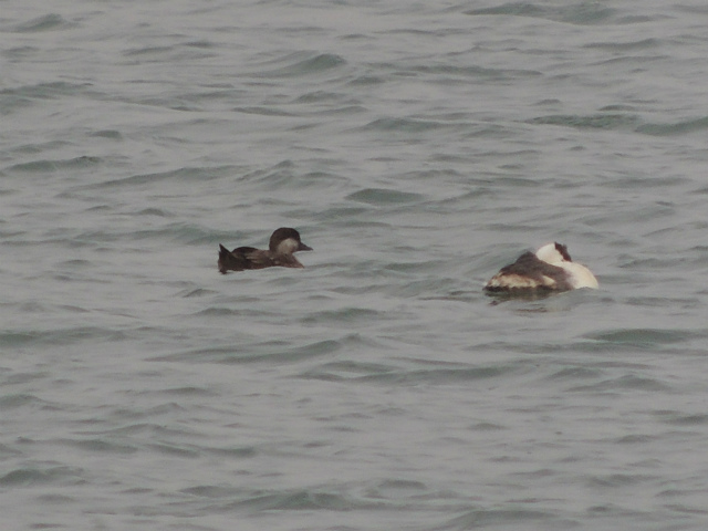 - 空模様が怪しい中、なんとか雨に降られずに探鳥ができた。カモ類はまだ健在。先月確認できたクロガモも残っていた。