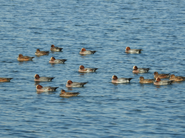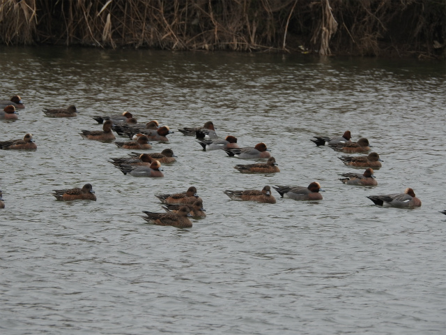 - 淀川大堰付近では中州にヒドリガモ、川の水面でキンクロハジロ等のカモ類を観察。