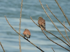 - 淀川大堰に着いてすぐにチョウゲンボウ2羽が頭上を飛び、中州のヒドリガモの群れに混じってヨシガモが数羽いるのを観察。