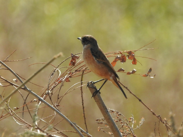 終点の城北公園手前でノビタキを確認、草の上を移動する姿を双眼鏡等で追いかけ観察した。