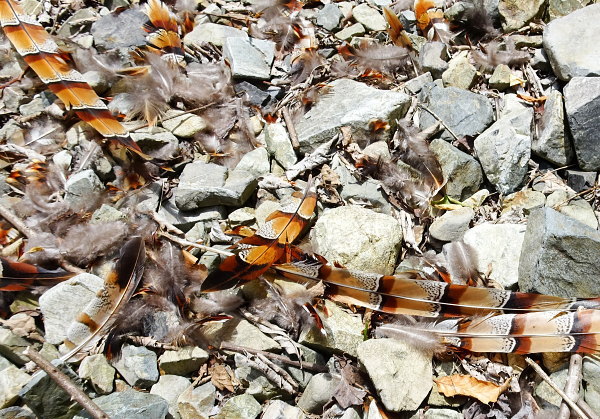 新鮮なヤマドリの羽根を拾うことが出来たのは幸運でした。喰われてしまっていたのは残念ですが。
