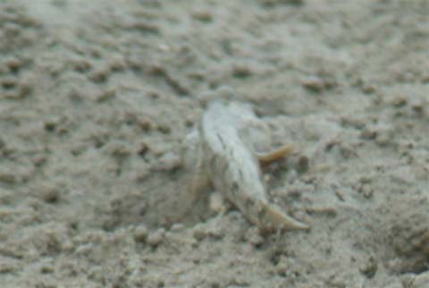 野鳥が少なくなったこの時期の干潟はカニ天国。今日は前半を野鳥観察。後半をカニの観察をした。テトラの上に6羽のチュウシャクシギとイソヒヨドリの姿が。ツバメやムクドリが先月より多い。カニはケフサイソガニ、アカテガニ、アシハラガニ、クロベンケイガニ、ハマガニ、カクベンケイガニ、ハマガニ、ヤマトオサガニ、シオマネキ、ハクセンシオマネキの9種が見られ、男里では絶滅したのでは?といわれているトビハゼの姿もあった。
