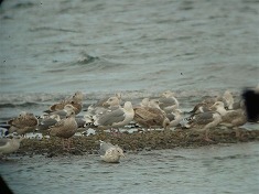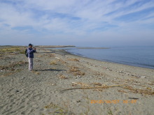 - 浜辺では、荒波に魚などが打ち寄せられているのかカモメ類が群れ飛ぶ姿や波打ち際で休む姿が一際目立つ。