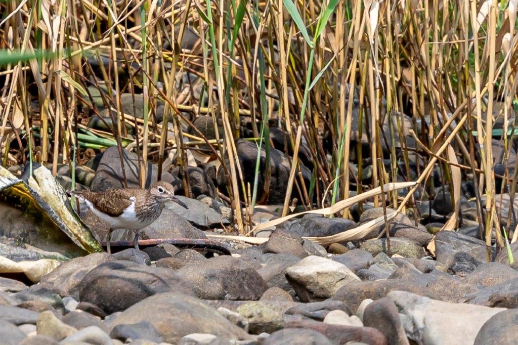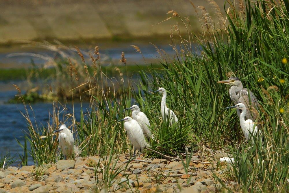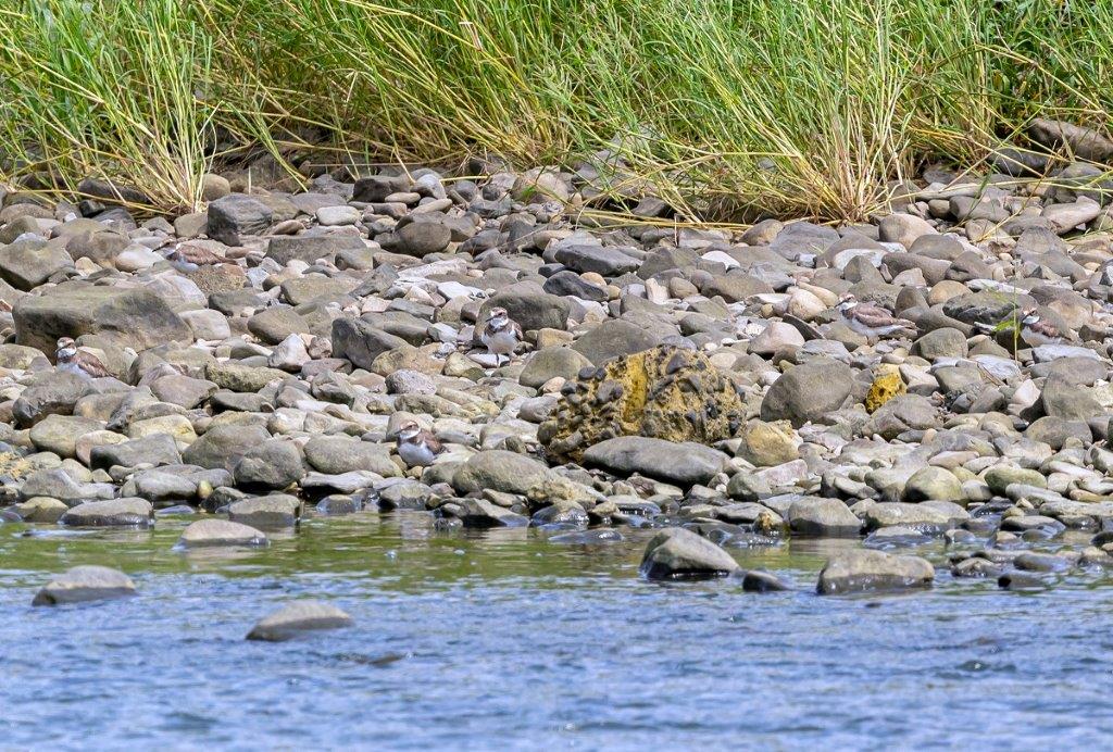 確認したシギ・チドリは、イカルチドリ、シロチドリ、コチドリ、イソシギ、キアシシギの5種と少し淋しい結果でしたが、上流で繁殖していたイカルチドリのたくさんの姿がありました。