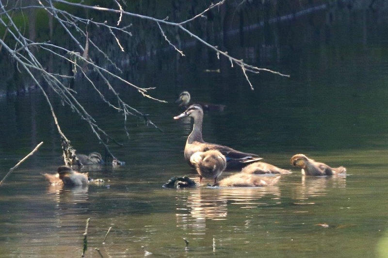 今年も第二集合場所の公園近くの水路でカルガモの親子がいた。ヒナは10羽位。