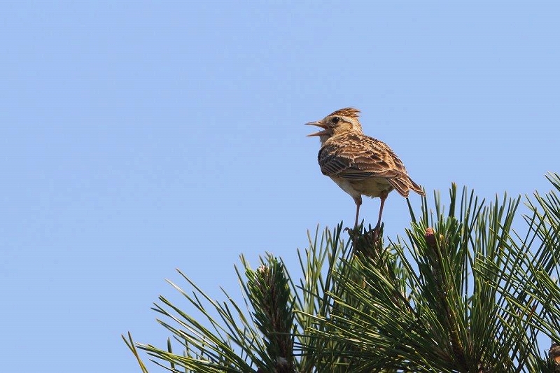 上空や松の樹に止まりさえずるヒバリの鳴き声を聴きながら海岸に向かった。