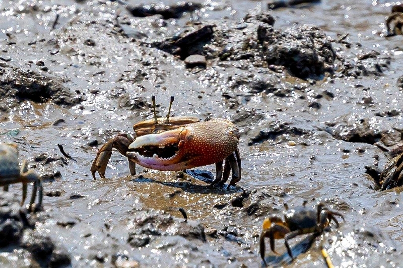 今年も干潟のカニを中心に観察した。潮の状況が芳しくなかったが、ヤマトオサガニ、アシハラガニ、シオマネキ、ハクセンシオマネキ、ユビアカベンケイガニ、カクベンケイガニ、フタバカクガニ、ハマガニ、モクズガニ(死骸)を観察した。