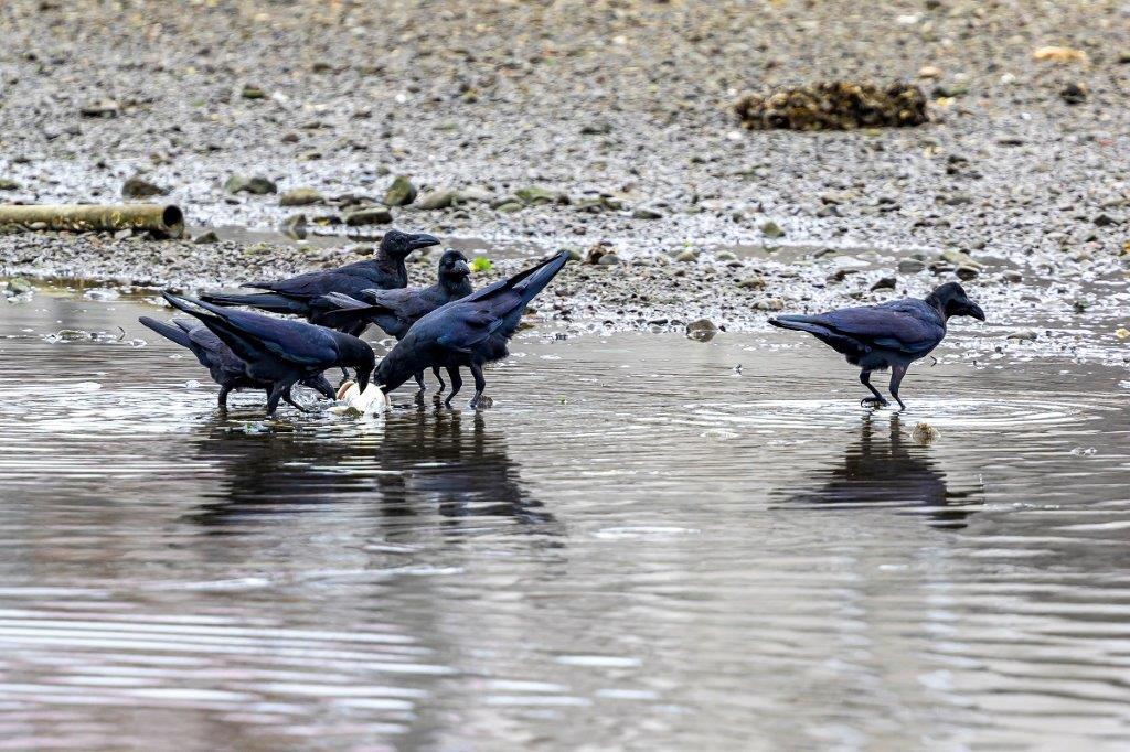 その間、上空を飛翔するミサゴ、魚の死体に群れるカラスなどを観察。カラスは全てハシブトガラスでハシボソガラスは混じっていなかった。