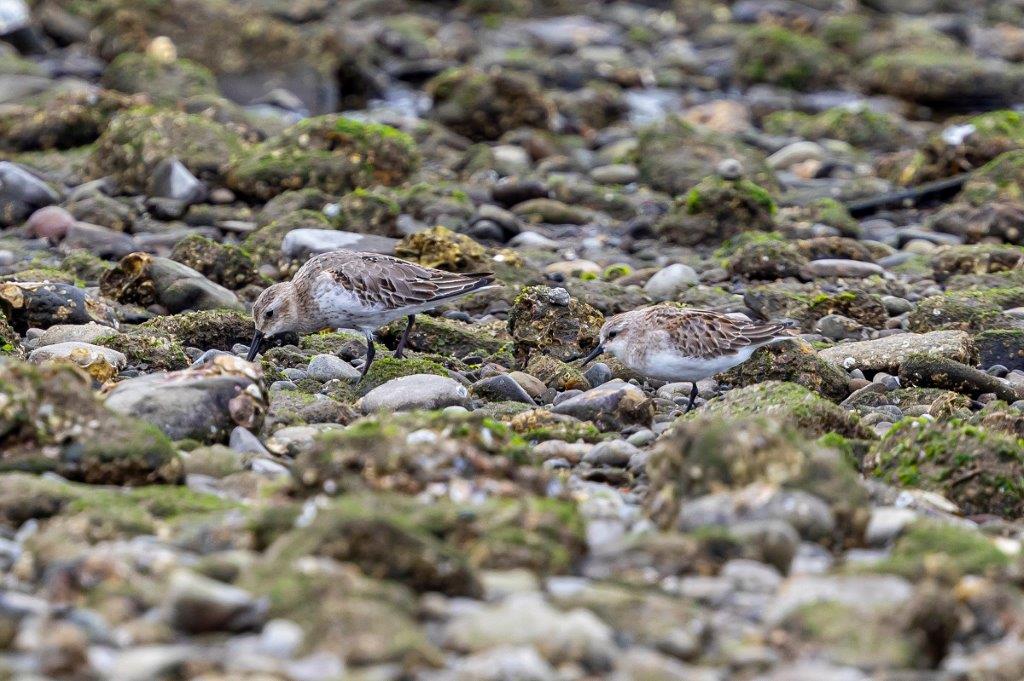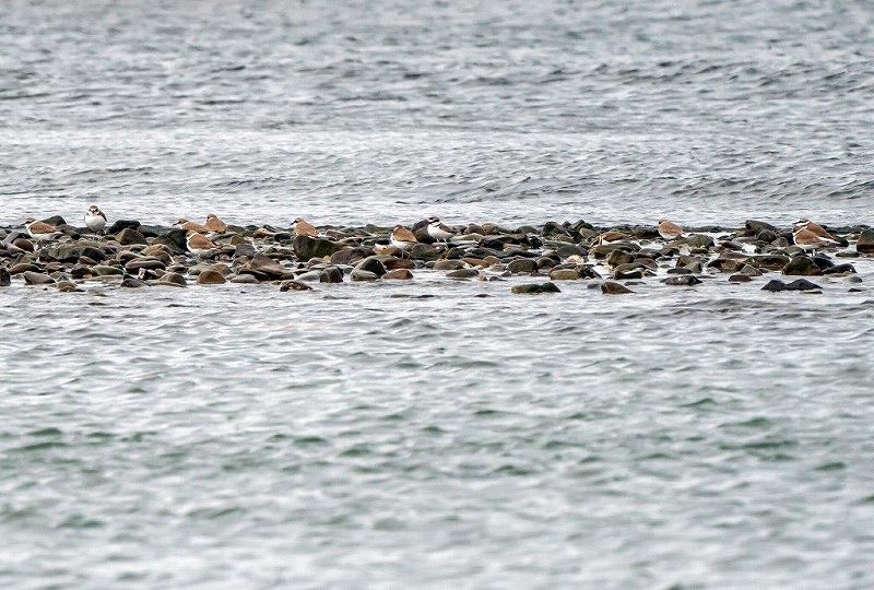 潮が引き出すとシギ・チドリが出現。確認したシギ・チドリは、イカルチドリ・シロチドリ・コチドリ・トウネン・ハマシギ・イソシギ・ソリハシシギ・キアシシギの8種類で、既に渡りが終わったようで、個体数は少なかった。