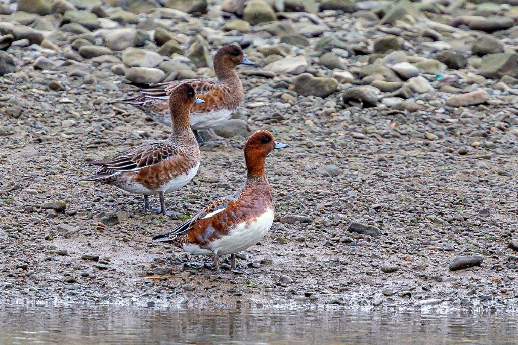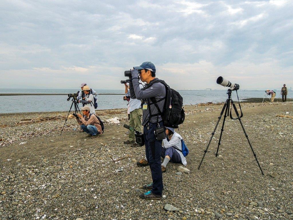 集合時には小雨がぱらつき出し、小雨の中での探鳥となりましたが、海岸部の探鳥を終え、右岸上流側へ向かった途端、本降りの雨となり探鳥が困難な状況になりましたので、10時半過ぎに探鳥会を終了しました。