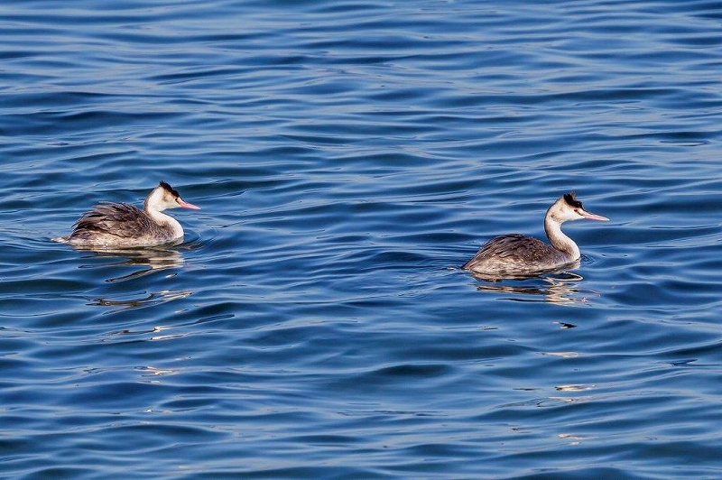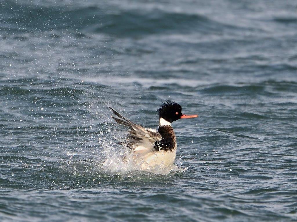 海上はべた凪状態で、沖合遠くにたくさんのカンムリカイツブリが浮かんでおり、ウミアイサやハジロカイツブリも確認できましたが、距離があり双眼鏡では確認が難しかったようです。