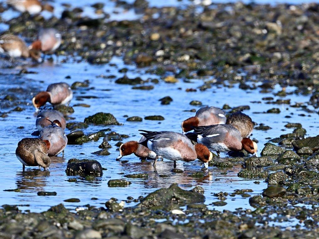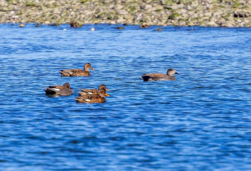 カモの顔ぶれは先月と変わりはありませんが、、オカヨシガモとコガモの個体数は先月より随分と増加していましたが、満潮時刻と重なり砂洲が出ていないため、カモメ類やシギチの姿は確認できませんでした。