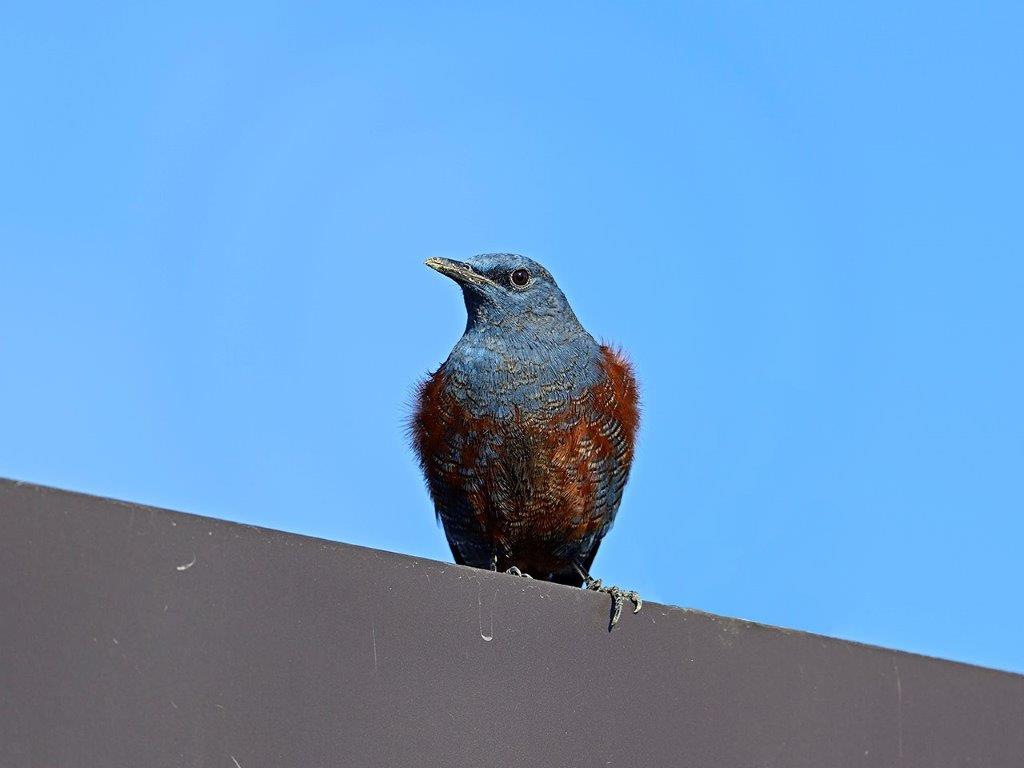 河川工事は今日も施工されており、工事区間の約1/3程度が施工済みで、そこにたくさんのカモが群れていたが逆光で、識別が困難なことから道路側を歩いて対岸に向かった。カモはほぼ例年のメンバーが揃っており、イカルチドリやイソシギ、イソヒヨドリ、セグロセキレイなども見られた。