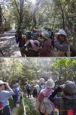 - 1.上)サンコウチョウ・オオルリ+カラの混群7種、(下)エナガの大群を見ているところ