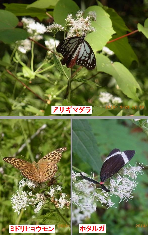 - 2.ヒヨドリバナに集まる蝶・蛾の仲間。この時期定番のアサギマダラも