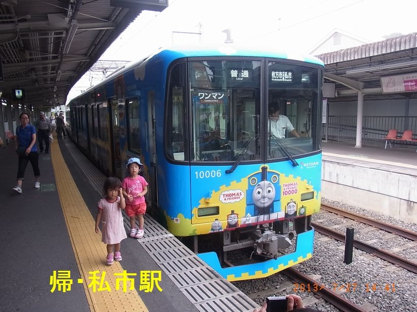 - 1.京阪電車は交野線に「きかんしゃトーマス」をディスプレイした車両を走らせています。探鳥会風景ではありませんが、行・枚方→私市行に乗った時、帰:私市→枚方行に乗った時、違うディスプレーの電車に乗り合わせることができました。トーマス車両を増やしたようです。
