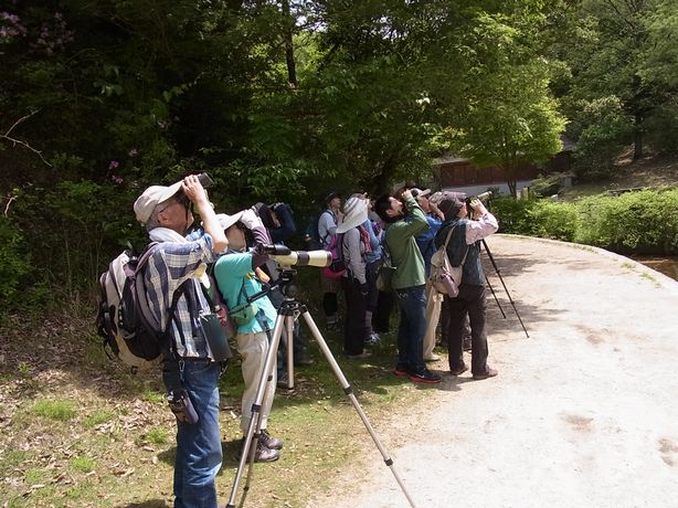 - 昨日の最高気温(枚方市)が38℃、昨日に続く暑さを予感させる日射しの中の清掃探鳥会にも関わらず、15名もの参加があった。