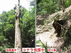 - 昨年、交野市周辺で猛威をふるった「ナラ枯れ」被害で枯れたコナラが伐採されていました。