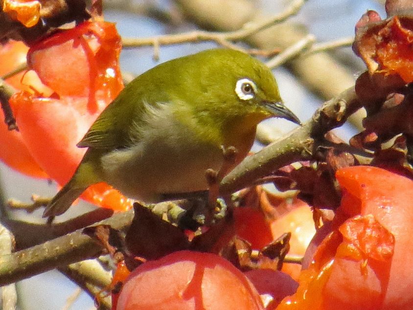 - カキノキにきたメジロ