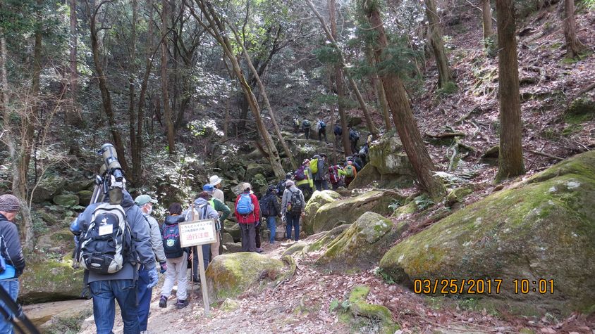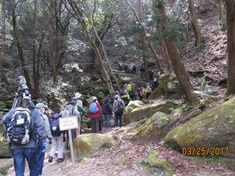 - 月の輪滝は40m近い標高差の急坂、一気に登ります