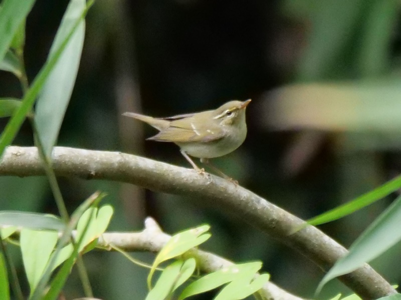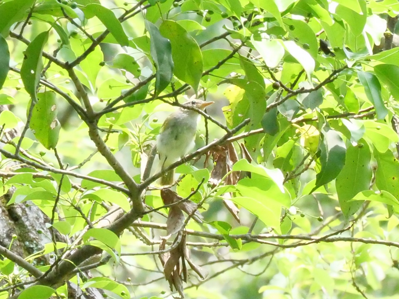 くろんど園地への上りの遊歩道は涼しく、オオルリ・キビタキ・ウグイス・ソウシチョウの声が入れ替わりに切れ目なし、ヤブサメも近くで鳴き、姿も見えた。園地に入って(姿は見えなかったが)ホトトギスの声が何回も、メジロ・エナガを中心とする混群に会うことができ、センダイムシクイの幼鳥を見た人もあった。