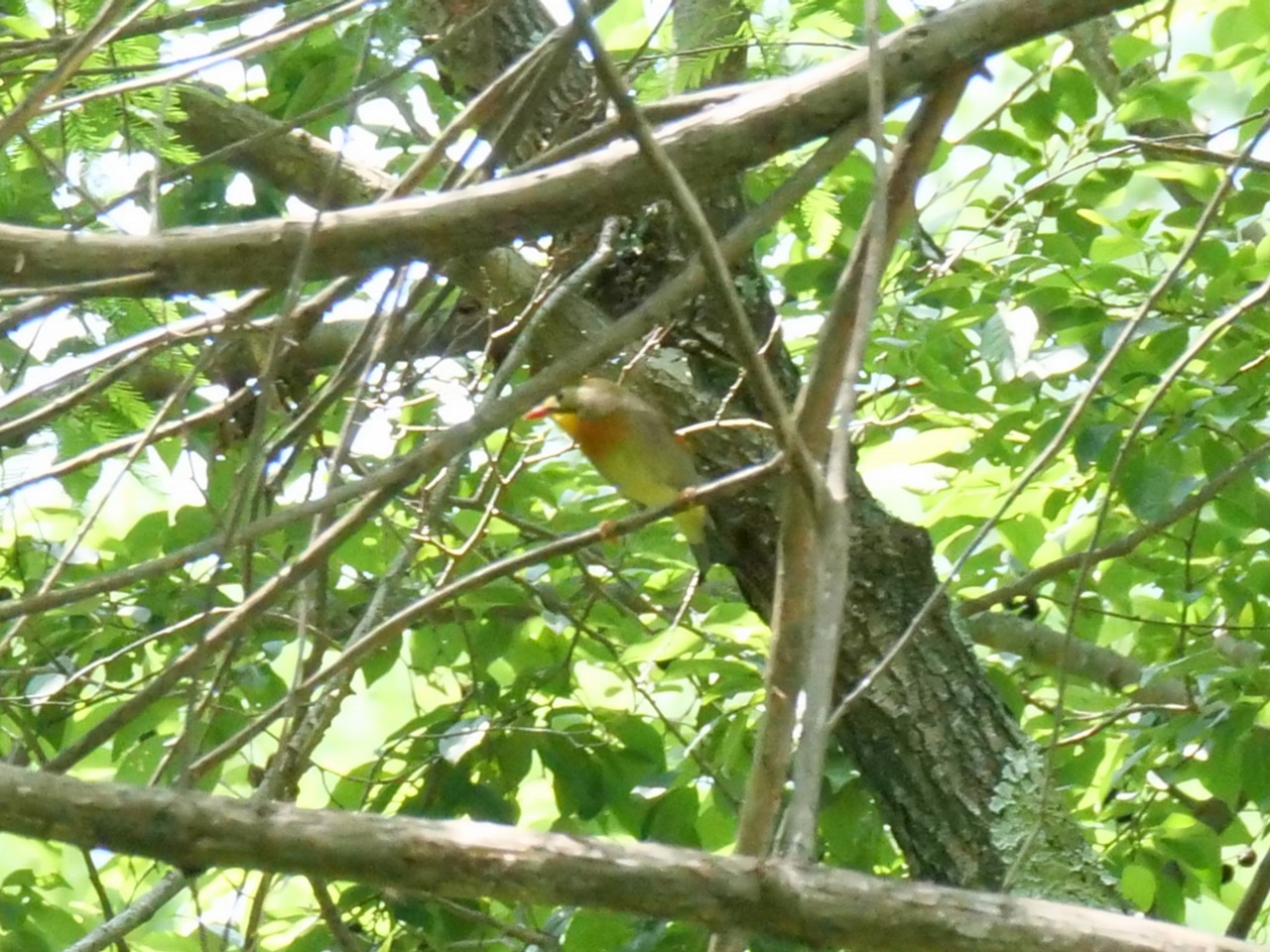 昼食後にサンコウチョウの声、何回も「月日星ホイホイホイ」と呼んでくれ、雄雌が確認できたので、繁殖を期待したい。更に帰りの下り傍示集落で、道路すぐ近くにキビタキ雄が姿を見せ、今までいたくろんど園地からホトトギスの声など、夏鳥・留鳥のが終わりまで出てくれ、ここで生まれた幼鳥も多かった。