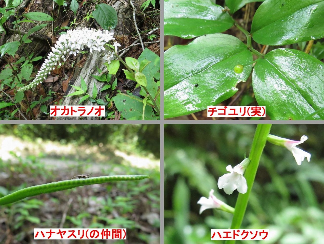 ⑤サンコウチョウの声を聴く、⑥野草4枚組:オカトラノオ花盛り、チゴユリ