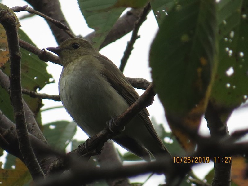 10月探鳥会をくろんど園地開催に変更したことで、昨年のように「ムギマキ」を、という期待から35名の参加者があった。しかし鳥はあまり出てくれず、園地入口に入って、すいれん池でようやくキビタキ、その後もキビタキ雌、そして雄もでて6羽となった。ほか鳥ではモズ6羽と多く、シロハラの初認、そしてムシクイは声がなく識別不能のためメボソムシクイSPとした。