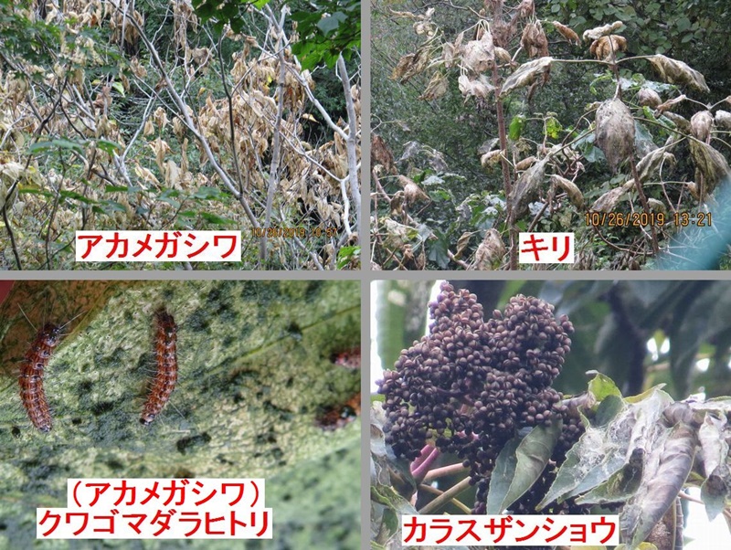 ④ホオジロ、⑤ムシクイ、⑥クワゴマダラヒトリの被害4枚組