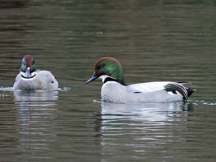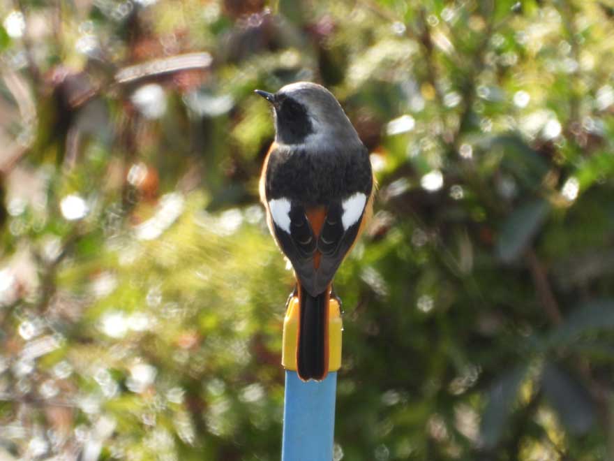 本年最後の探鳥会、初冬と思えない穏やかな天気にもかかわらず、鳥はあまり出てくれませんでした。くろんど園地までの上りでミソサザイの声、昼食時に、たわわに生るカキの実をメジロが食べごろかどうかチェックに来ており、また、コジュケイが鳴いた。くろんど池ではヨシガモとオオバンの群、池周辺広場のマツ林でビンズイ・ルリビタキ・シメ・イカル・ツグミがでて、ようやく探鳥会気分が開でてきた。帰り道の傍示の里で、探鳥会のレジメに書いた通り、熟したカキにシロハラが来ており、畑の杭には大きな紋の綺麗なジョウビタキ雄が長く止まってくれた。