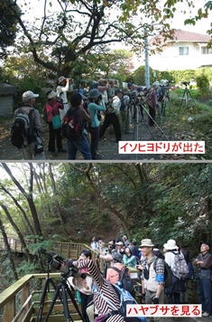 - 快晴の探鳥日和、ジョウビタキがいるとのことで近くの若宮神社経由とした結果、ジョウビタキ♂がばっちり、しかも近くの民家のアンテナにイソヒヨドリ♀のおまけつき(イソヒヨは両園地探鳥会初記録)と、幸先よくスタートした。