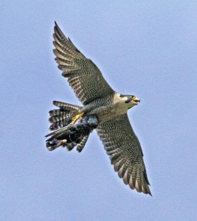 - Bレースバトをつかんだハヤブサ(10月8日河村壽氏:今日の探鳥会資料に利用 させていただいた)