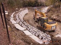 - 昨年8月中旬の豪雨で決壊した遊歩道を改修工事中