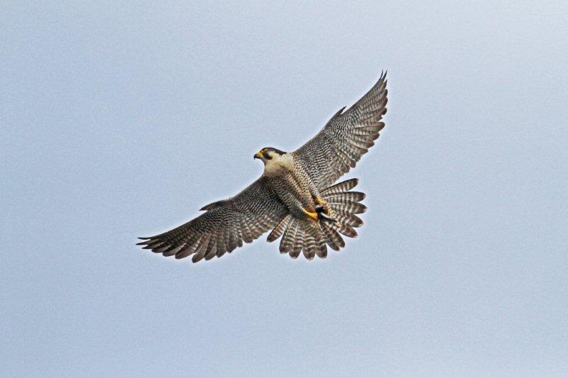 - 鳥の写真は撮っていないので、河村壽氏が前日に撮影されたハヤブサ♀。今日の探鳥会では見られませんでしたが、ハヤブサはここ数日交尾が続いているそうです。