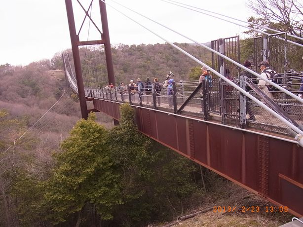 - ほしだ園地名物吊り橋「星のブランコ」を渡る