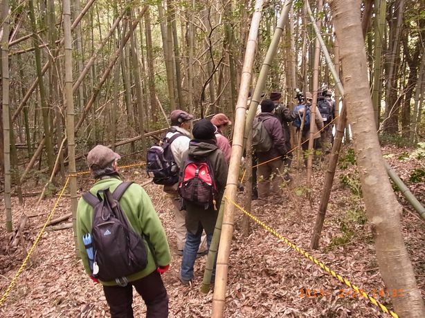- 工事中のため、山林内に作られた迂回路(仮遊歩道)