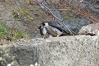 - 巣にいる♀にムクドリを運んできたハヤブサ♂(今日の資料に利用させていただいた:2013.4.17河村壽氏撮影)