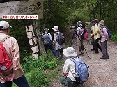 - 山地(天野川沿いの遊歩道)に入り、キビタキ・オオルリ・ウグイスなどのさえずりを聞くも予想外に鳥は少なく、期待していたほしだ園地のハヤブサも既に巣立っており、朝から一度飛んだだけとのことで、ハヤブサ待ちのカメラマンも手持無沙汰のようだった。