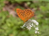 - オカトラノオの花に群がっていたミドリヒョウモン