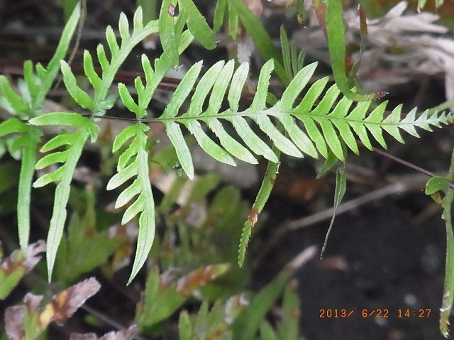 - アマクサシダ。平は6/27に予定している「くろんど園地のシダ」観察会のため、シダを良く