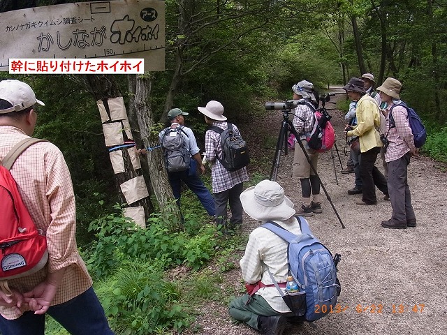 - コナラ受難A カシナガ対策中。数年前から交野市のカシノナガキクイムシによるコナラ枯れが発生している。昨年幹に穿入したカシナガが、今年コナラから出てくるのを、ホイホイ方式で一網打尽を目論んでいる。