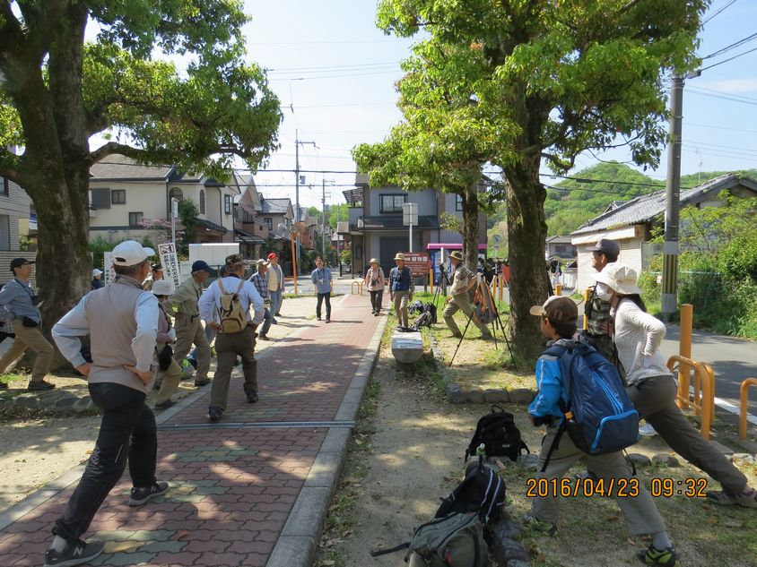 - 両園地探鳥会スタート時に友田さんのリードでストレッチ(以降全て平さん撮影)