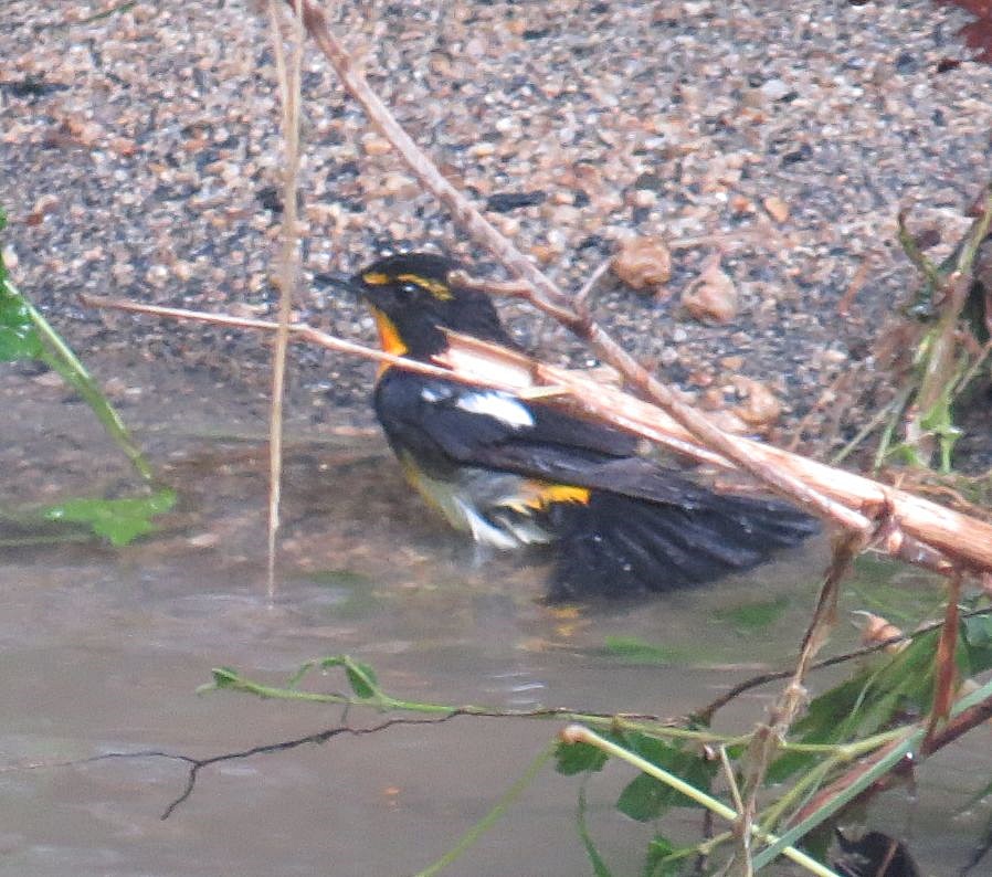 - 星の里いわふねを過ぎてすぐに水浴びをして羽繕いをするキビタキ♂を観察。