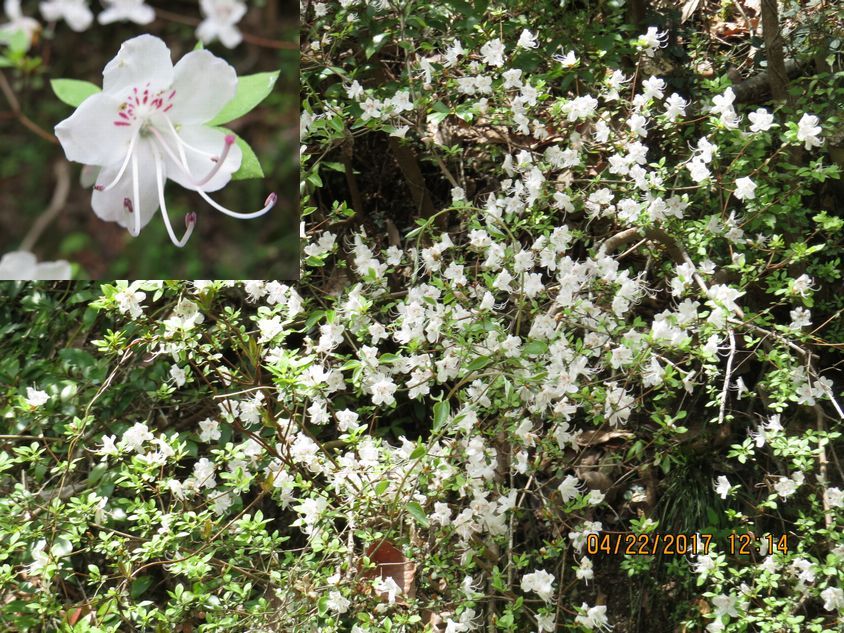 ほしだ園地の園路沿いに咲く小さな白いツツジ「シロバナウンゼンツツジ」