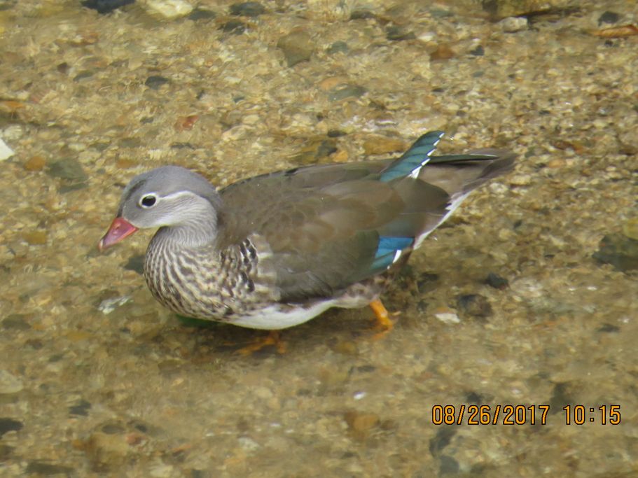 羽を痛めているのでしょうか、ここ2年ほど天野川にオシドリ♂が越夏しているが、今日はエクリプスの姿を見せてくれました