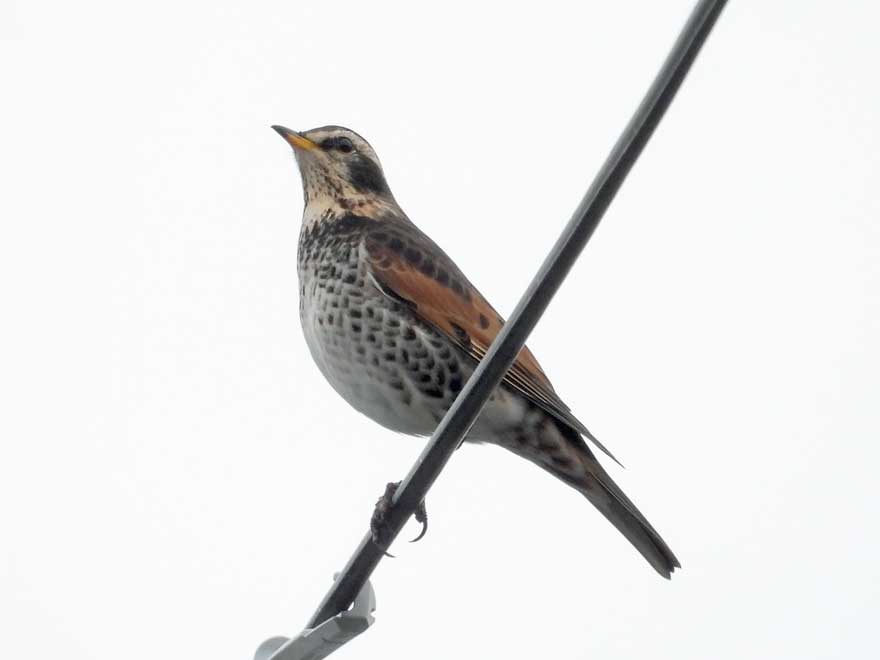 鳥はメジロのみだったがアサギマダラ1頭近くを飛んでくれ、帰りは鉄塔にいるハヤブサを全員見ることができた。園地駐車場過ぎてからエナガ、メジロの鳴き声が多くなり、特にメジロが次々に50羽も飛んだ。平地近くでサシバ3羽が上空を舞ってくれ、雨も降らず、終わり良ければ…の探鳥会となった。