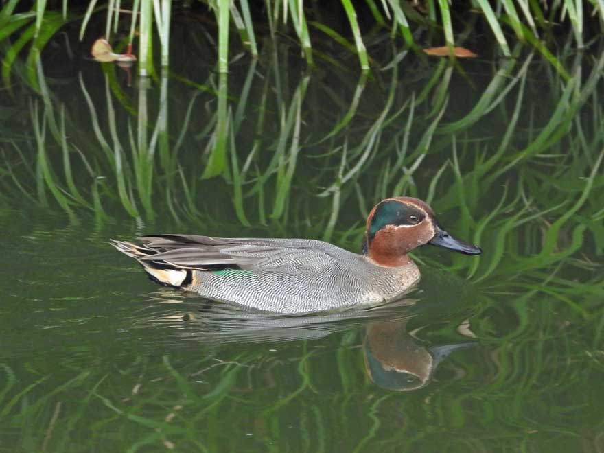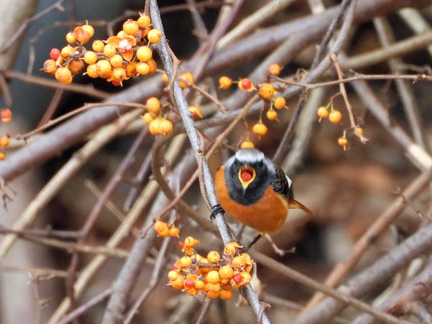 ①ツグミ、②ジョウビタキとツルウメモドキ、③メジロ、④コガモ