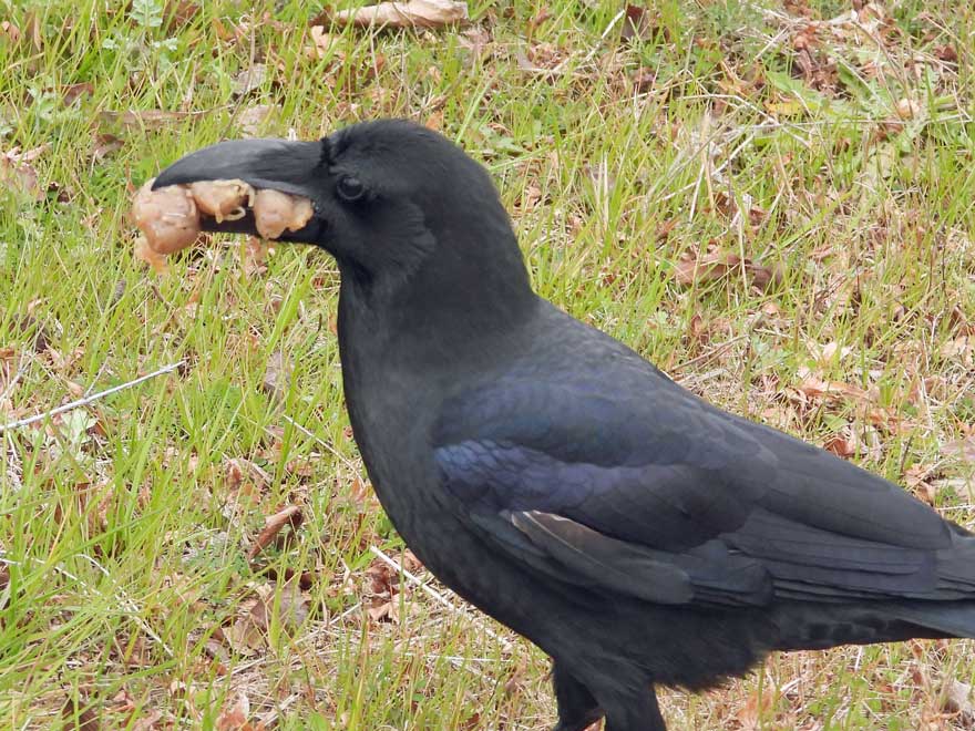①ハヤブサのヒナの食事はムクドリ(顔)、②同じく(足)