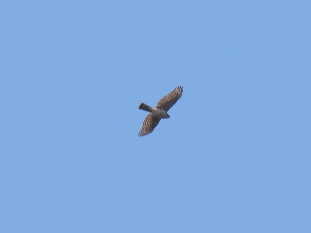 天野川沿いでカルガモ・コガモ・アオサギ・セグロセキレイ、山地に入ってエナガやメジロを中心とするカラの混群に何回も出た。
