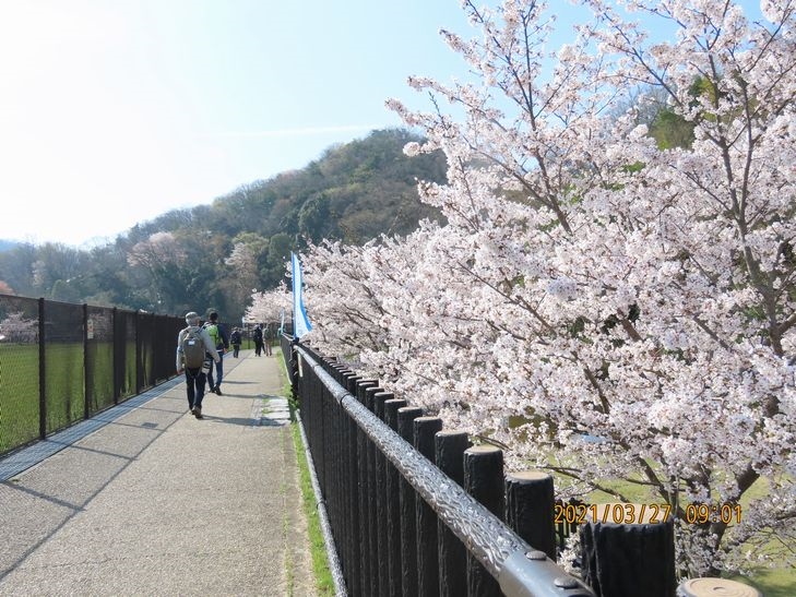 2020年度は2回のみに終わった探鳥会、平地の近景はソメイヨシノ、山地の遠景は交野つり橋からの眺めもヤマザクラが満開で春爛漫、しかし鳥はウグイスだけが賑やかでした。